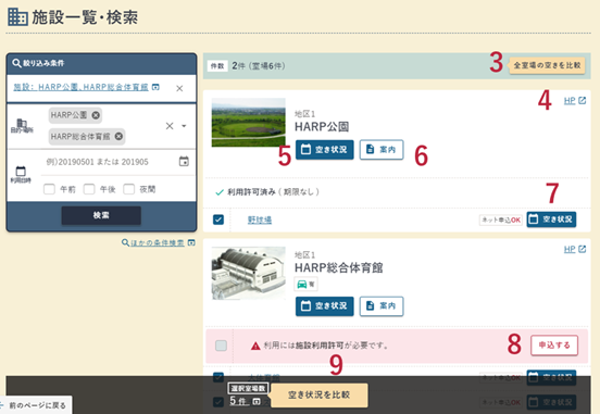 【申込する】ボタンから施設利用許可申込が行えます。 - 空き状況を比較