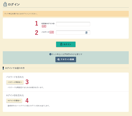 ログインをすることで、抽選や予約の申込を行うことができます。
