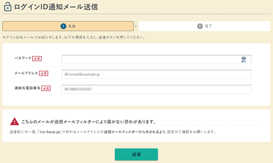 ヘルプ - ログインID通知メール送信