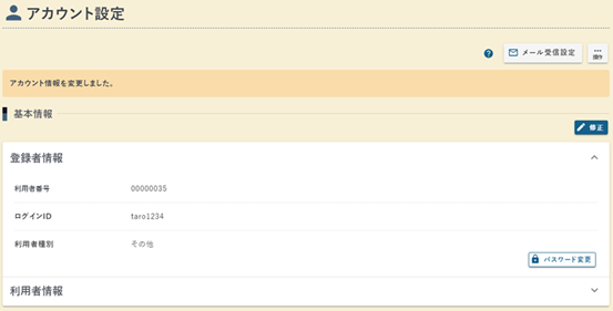 アカウント情報修正が完了しました。
